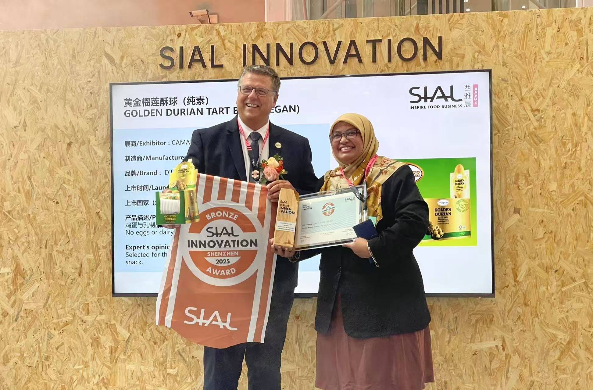 9月初,在2025 SIAL西雅国际食品展(深圳)举办同期,第24届SIAL创新大赛获奖榜单正式发布。CAMARIA GLOBAL SDN BHD选送的产品D’Lapezz 品牌黄金榴莲酥球(纯素)荣获SIAL创新大赛铜奖。其推出的纯素版本的一口式零食这一创意而获得评委一致青睐,打开了纯素零食创意新思路。