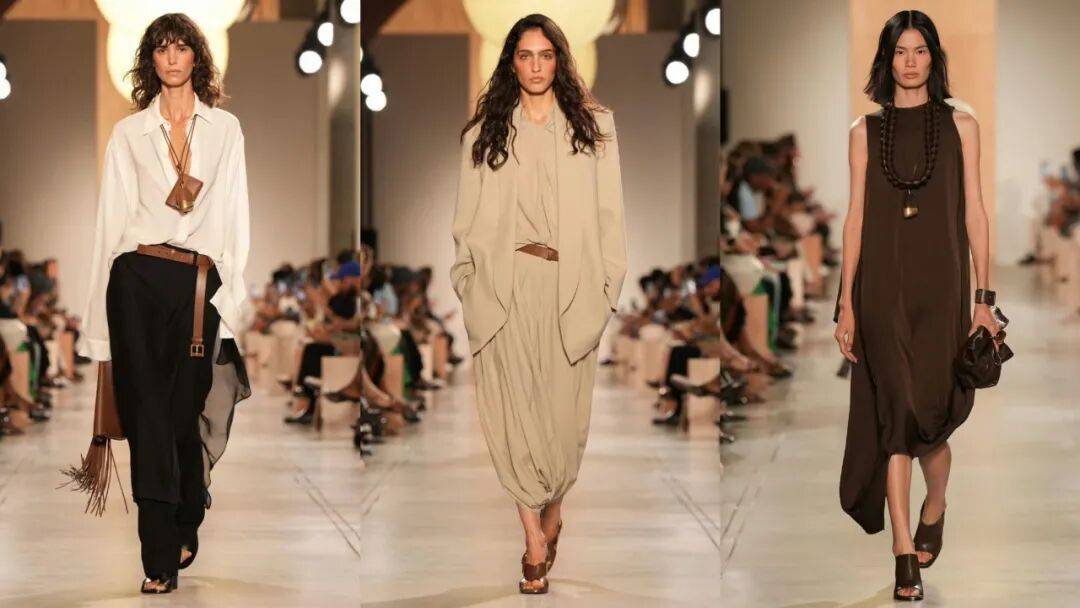 而本届纽约时装周的开幕秀由素来主打都市精致感的Michael Kors,其2026春夏系列以“原境之雅”为核心,选择向自然的原生力量取经,从自然肌理中汲取灵感,并将设计师本人海边度假屋的生活方式融入创作,旨在表达一种平衡都市与自然的极简主义现代美学。当大量看似无序、甚至带着粗犷感的设计元素闯入视野,它们没有打破优雅,反而成为现代优雅的全新突破口。最吸睛的莫过于夸张比例的皮革流苏,无论是摇曳在耳畔的耳坠,还是点缀在包身的挂饰,都为造型赋予潇洒不羁的一面。而奢华的皮革单品则通过镂空工艺带来更清爽舒适的穿着体验。