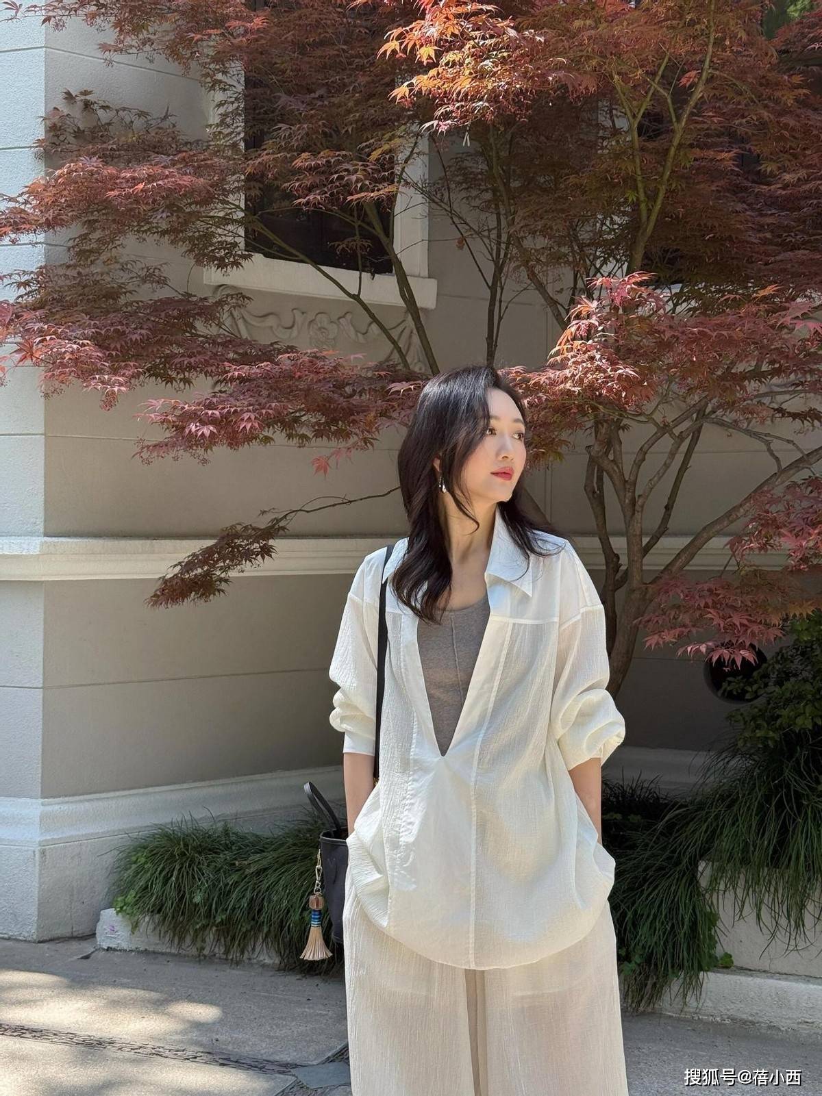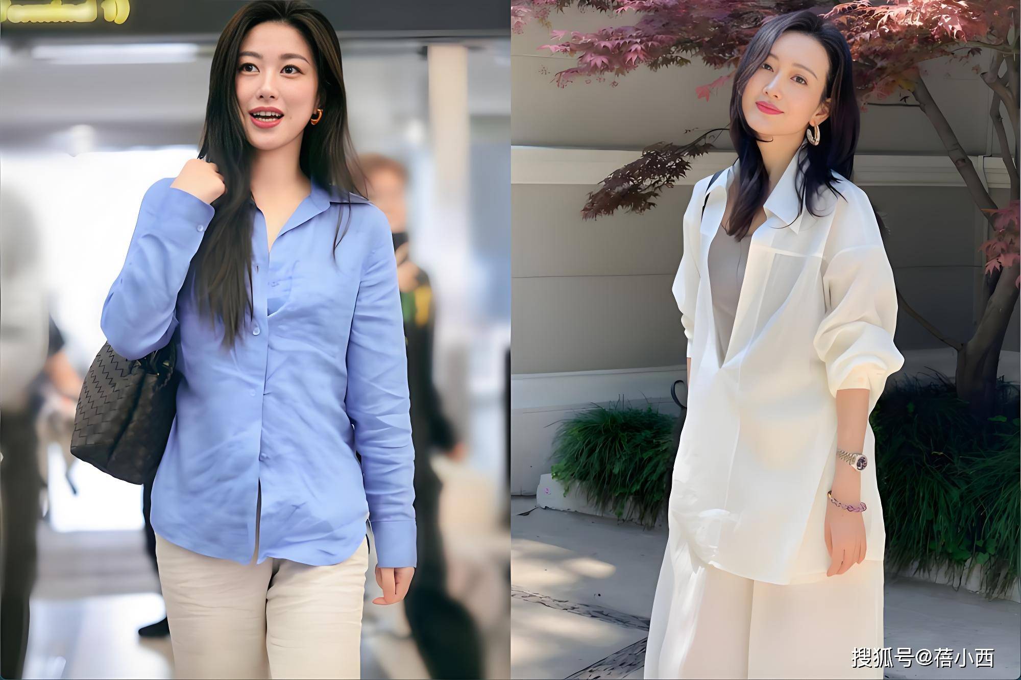 与朱珠的宽松风格相似,王鸥的穿搭也充满了舒适与时尚感。她穿上一件白色宽松衬衫,搭配同色系的阔腿裤,仿佛从画中走出的仙子。白色的纯净与宽松的版型相得益彰,散发着清新脱俗的气息。宽松的衬衫自然垂落,巧妙地遮掩了身材的小瑕疵,同时又展现出一种若隐若现的神秘感。搭配的阔腿裤,使她的双腿看起来笔直修长,行走之间,裤脚随风飘动,尽显洒脱与灵动。
