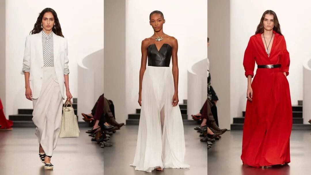 Ralph Lauren以一场简洁利落的2026春夏系列,再度将六十年累积的经典美学转化为当代语境,回应“长青与关联性”这个时尚产业最难的命题。本季发表选址于Ralph Lauren位于Madison Avenue的总部,空间被改造成一种亲密而低调的氛围。相较于秋冬的华丽荷叶边与天鹅绒,此番系列以红、白、黑三色勾勒,廓形与曲线的交融,利落、清爽而带有浪漫感。西装外套凭精准剪裁立住气场,内搭抹胸替代衬衫,性感与干练平衡得恰到好处;纱笼式裹腰裤装一上身,自由不羁的气质立刻拉满。配饰是点睛之笔—— 宽檐草帽、沙滩条纹、银色贝壳坠饰,三重元素直接将海边度假感拉满。到了晚间,吊带裙与闪耀礼服风格一转,走极简克制路线,却反而淋漓尽致地诠释了Ralph Lauren的美学。